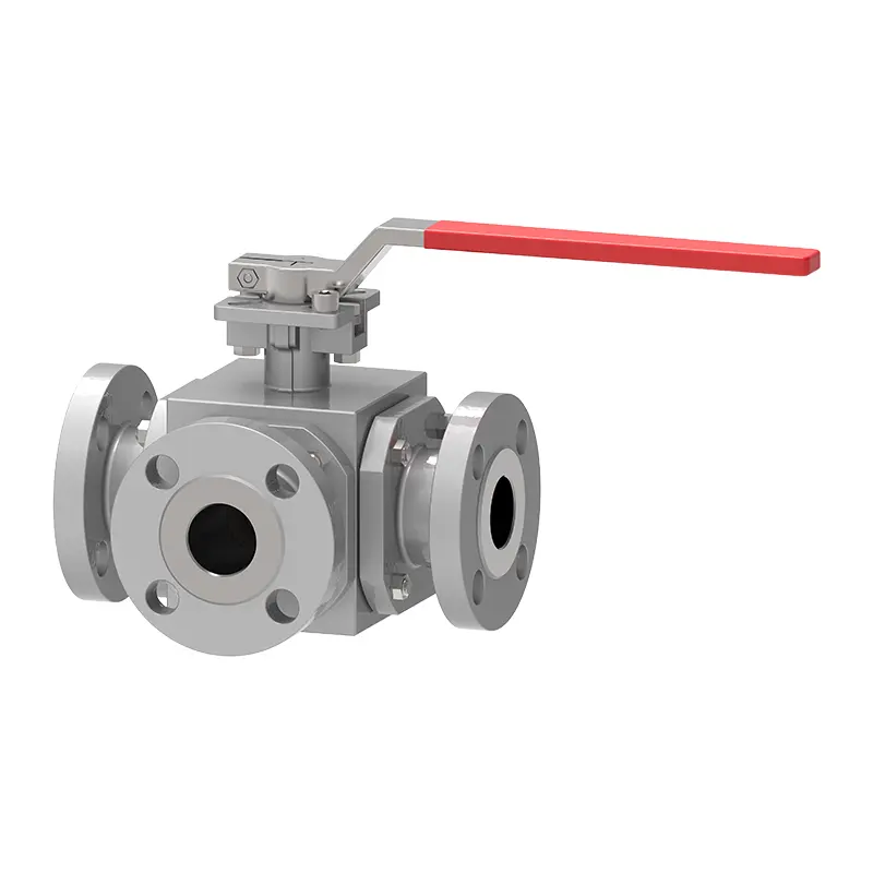 Atendas valva daŭra triflanka pilka valvo havas tri havenojn, kaj la kanaloj sur la pilko estas desegnitaj por specifaj ligoj. Oftaj agordoj inkluzivas T -tipon kaj L -tipon. La T tipo tri-pilka pilka valvo integras tri interkonektitajn kanalojn en la pilko, kio permesas fluidan ŝaltadon kaj distribuadon en tri direktoj; Dum la L-tipo-pilka valvo enhavas nur du vertikalajn kanalojn por redirekti fluidan fluon inter du specifitaj havenoj. La valvo funkcias rotaciante la pilkon tiel ke ĝiaj internaj kanaloj vicigas kun la respondaj havenoj, permesante fluidon trapasi, aŭ bloki fluidan fluon kiam rotaciita al specifa angulo. Ekzemple, en T -tipo -valvo, ĝustigi la pozicion de la pilko povas agordi la havenon -kombinaĵon, kaj personecigitaj valvoj povas plenumi malsamajn procezajn fluojn.